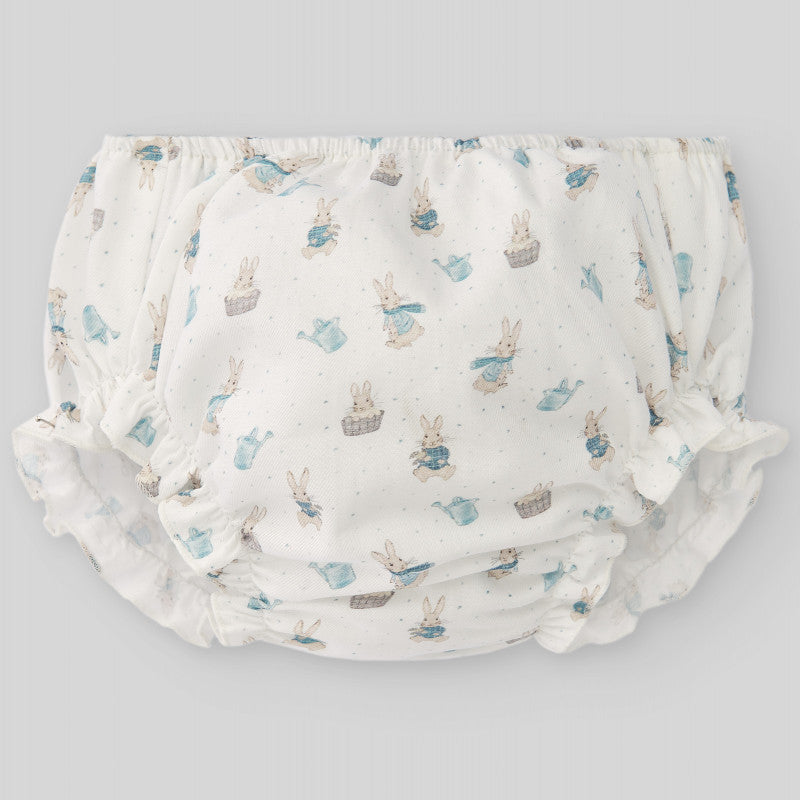 100% cotton bloomer with rabbit print and subtle polka dots, for girls aged 1 to 24 months. Elastic waistband and leg openings for added comfort. Perfect for coordinating with the MAGIA collection